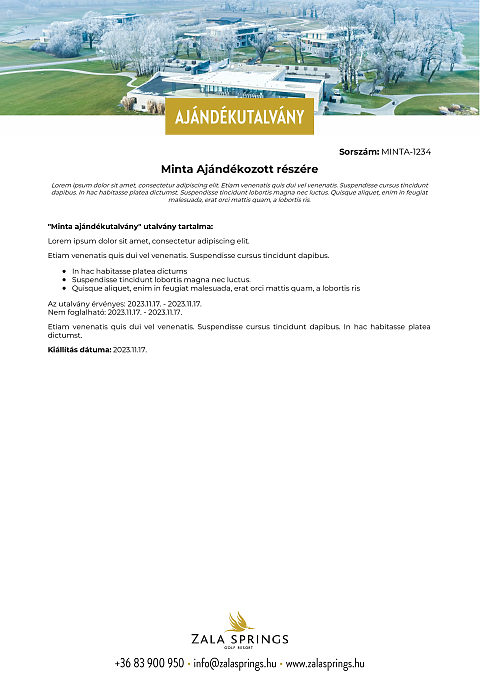 - Golf bemutató és oktatás a driving rangen, gurítás a putting grennen, pályatúra, golfmenü egy itallal.